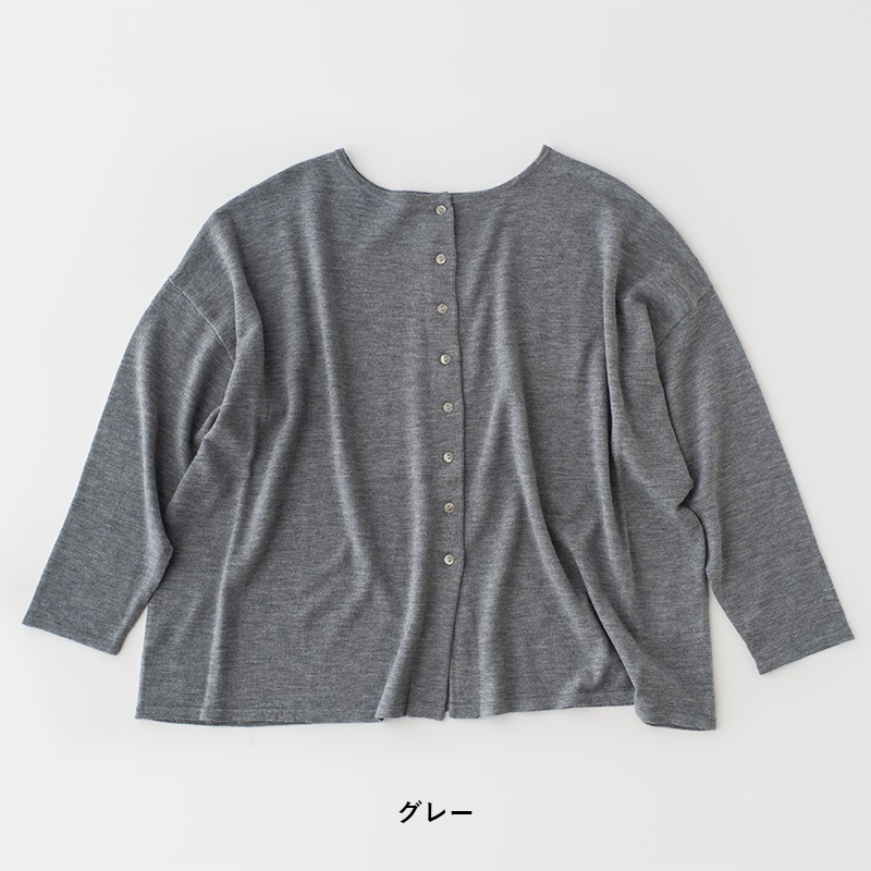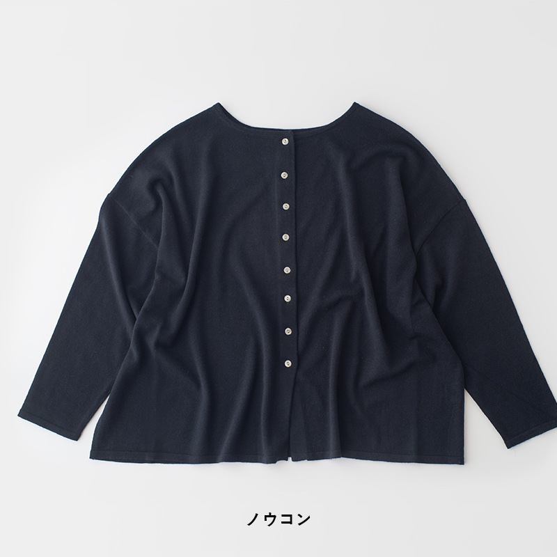 前後どちらでも着用可能な2way仕様で、プルオーバーとして印象を変えて着こなすこともできます。