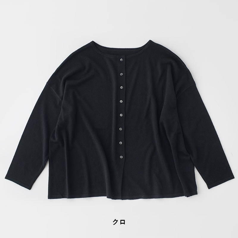 ワイドな身幅でゆったりとしたシルエットのカーディガン。
