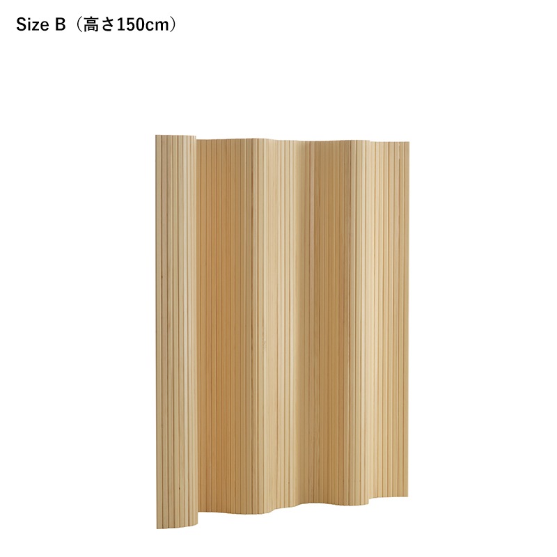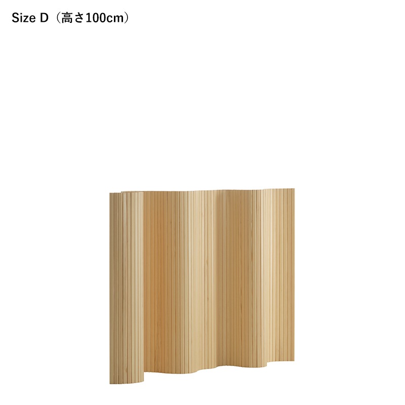 「SCREEN 100」は、自由で有機的なフォルムを空間に取り入れることのできるアアルトらしさの詰まったプロダクトです。部屋の間仕切りとして使用できるだけでなく、端から巻いて収納することもでき、持ち運びも簡単です。アアルトの家具によく使用されるバーチ材ではなくフィンランド産のパイン材を使用し、使い込むことで“パティナ”と呼ばれる味わい深い経年変化を楽しむことができます。