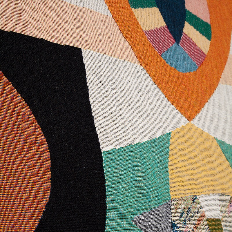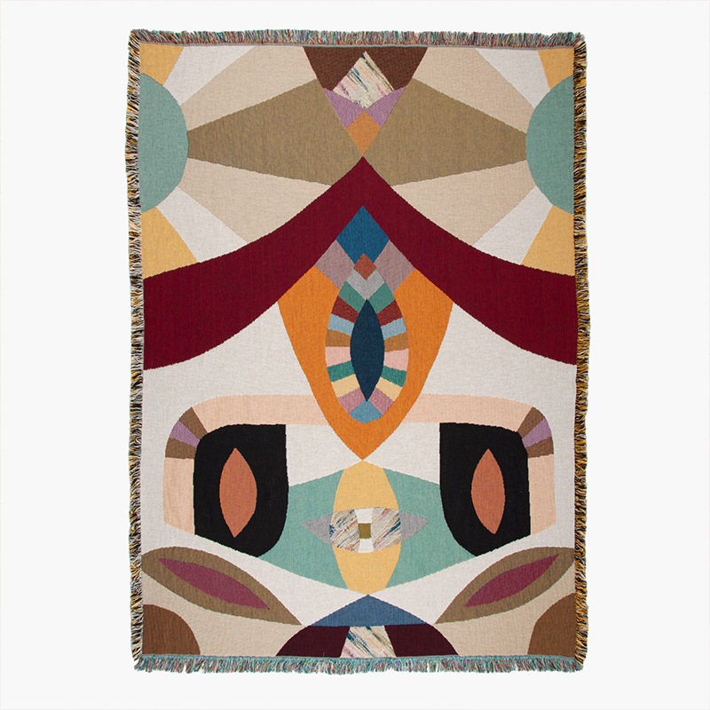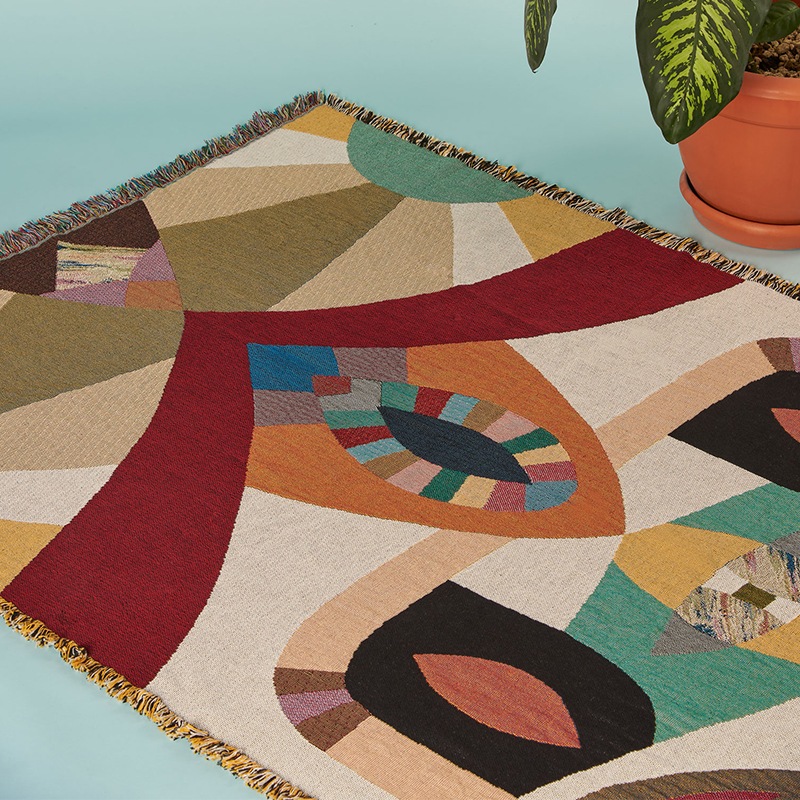 ブランドの代表的なアイテムであるブランケットは、大胆な色使いとポップな絵柄が特徴。