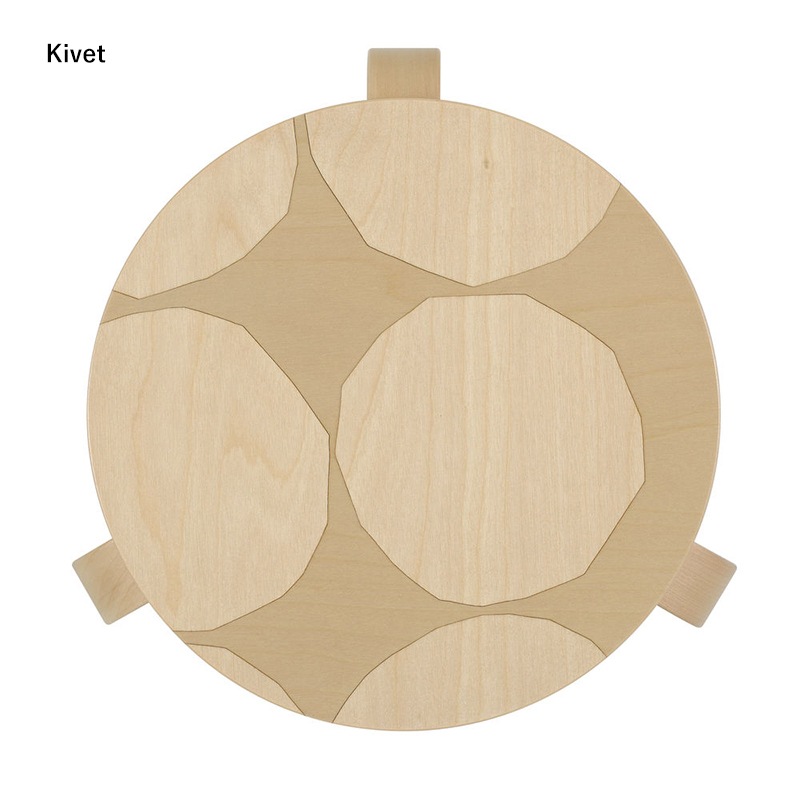 マイヤ・イソラによるパターン“キヴェット(石)”は、ハサミで切り抜いた円をベースにしています。このパターンは彼女のアトリエの敷地から人の手で取り去られた大きな岩石からインスピレーションを得て生まれたと考えられています。